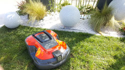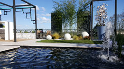 Pour revisiter le potager, nous avons implanté des plantes aromatiques dans les gabions. Les éléments électriques et connectés permettent de mettre en valeur l’espace tout en le scénarisant. Ainsi, le robot de tonte fait le travail à votre place et défini seul les emplacements qui demandent une coupe. L’éclairage est géré par Bluetooth ou wifi, tout comme la lame d’eau et l’arrosage. Il est possible de programmer et gérer ses consommations en eau plus facilement.